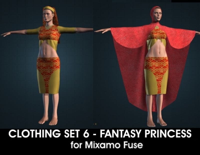 Clothing Set 6 - Fantasy Princess for Mixamo Fuse, Unity3D, Poser Pro 2014 GameD