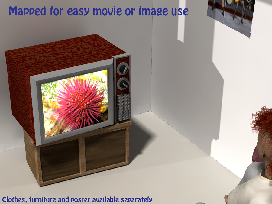 This is a super-simple old school CRT TV set that I made a few years ago, when I got frustrated that none of the freebie TV models I found had a properly UV-mapped screen.