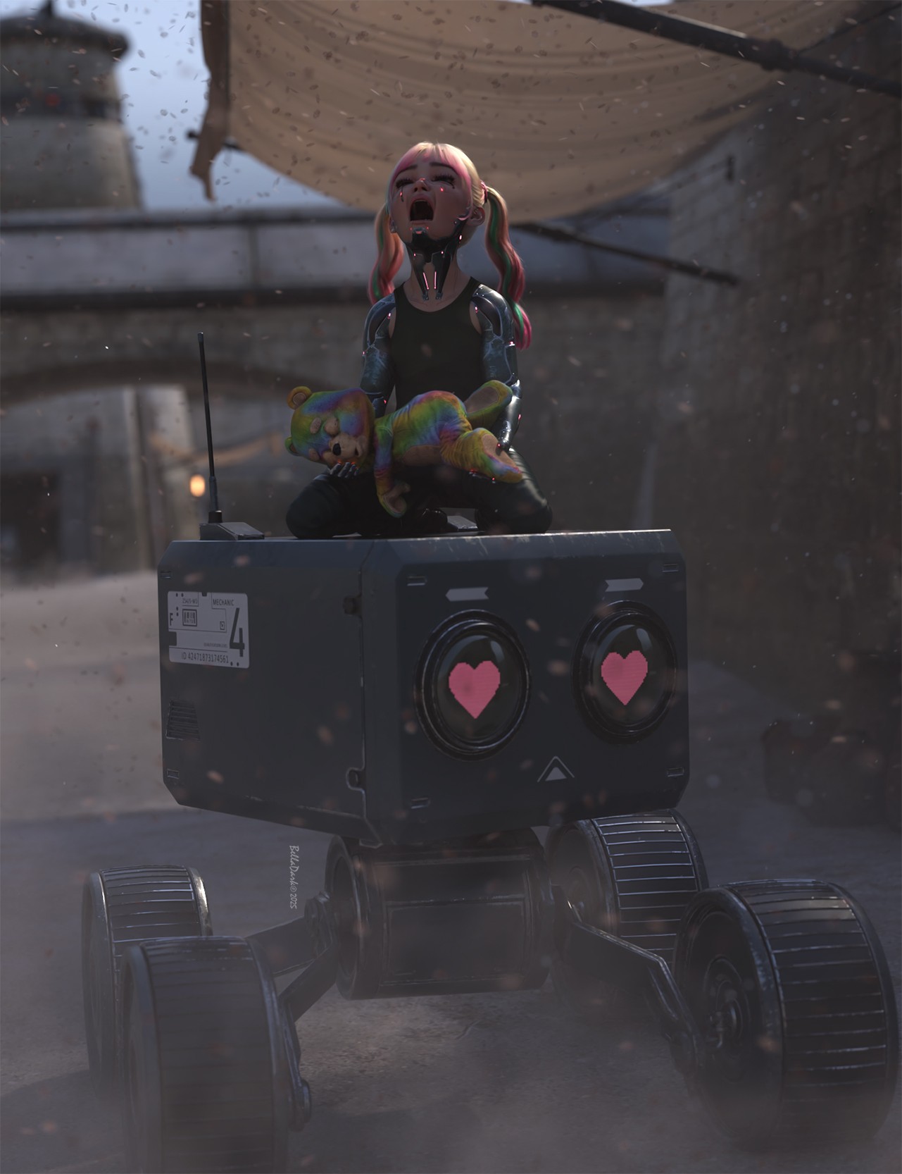 #DM #Stonemason #Sickleyield #SciFi #TeddyBear #Cyborg #robot #outpost #sand #smoke #DazStudio #Daz_Studio #NO_AI