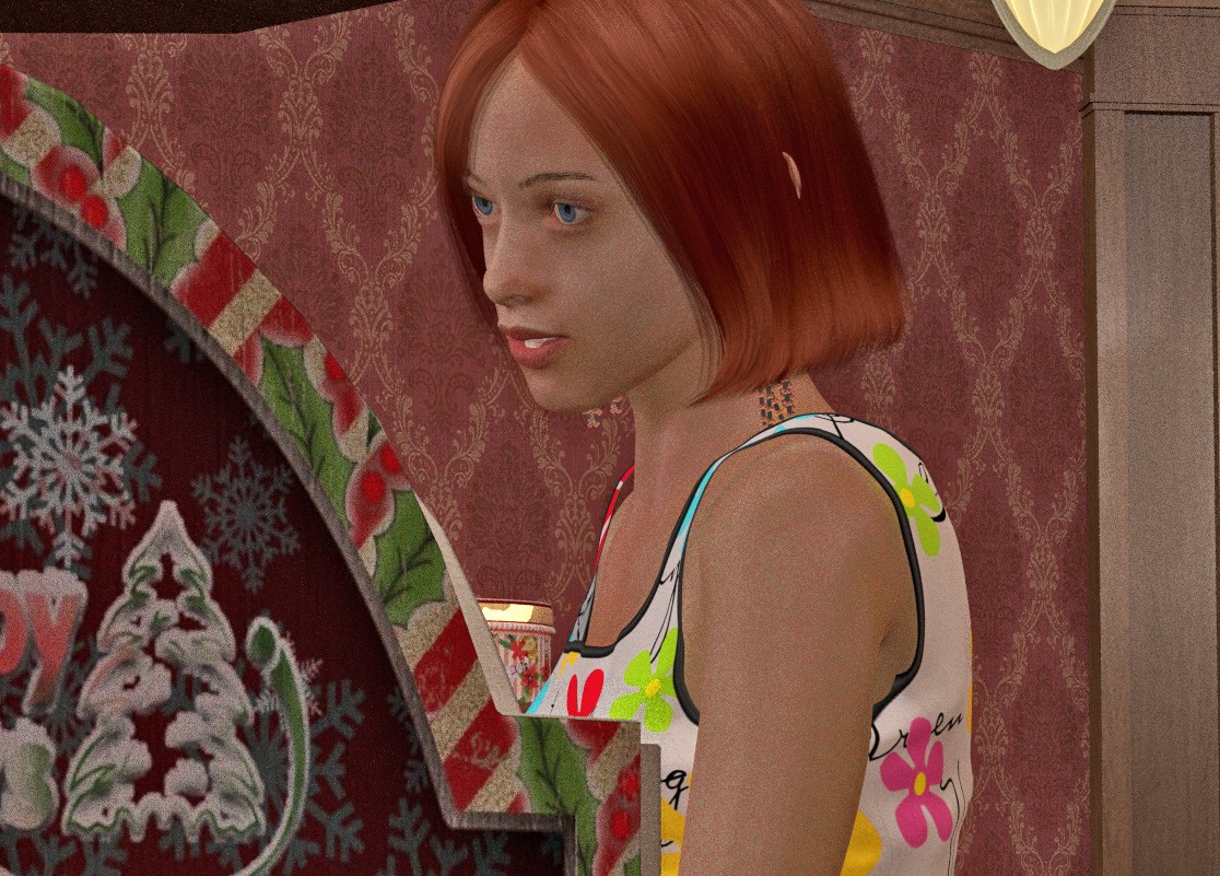 Very pretty morph, buddy! Love this wall pattern and Xmas prop too.