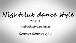 "Nightclub dance style part 3" is animations for DAZ 3D's Genesis, Genesis 2 Male and Female, Genesis 3 Male and Female and Genesis 8 Male and Female. Product included 6 seamless looping animations in the pack.